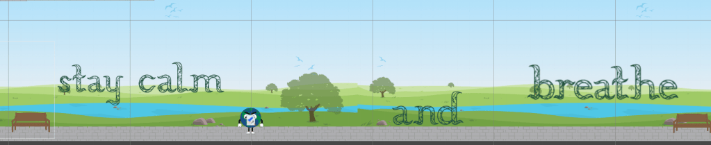 So with my level game design, I decided to do a sentence which relates to the concept of de-stressing (through nature.) Also, in the future if I were to do more level designs, I would do more sentences that are reminders about staying calm, slowing down etc . Through this alteration process, I was able to make my concept more clear as well as by changing the concept and plot of the game (by removing the antagonists,) it really started to feel like a relaxing and de-stressing game as it didn’t involve any enemies and any violence. It really started to feel like a poetic approach which correlates to the work I am doing in studio about Lake Panorama too which is really good because it shows that connection between the two papers.