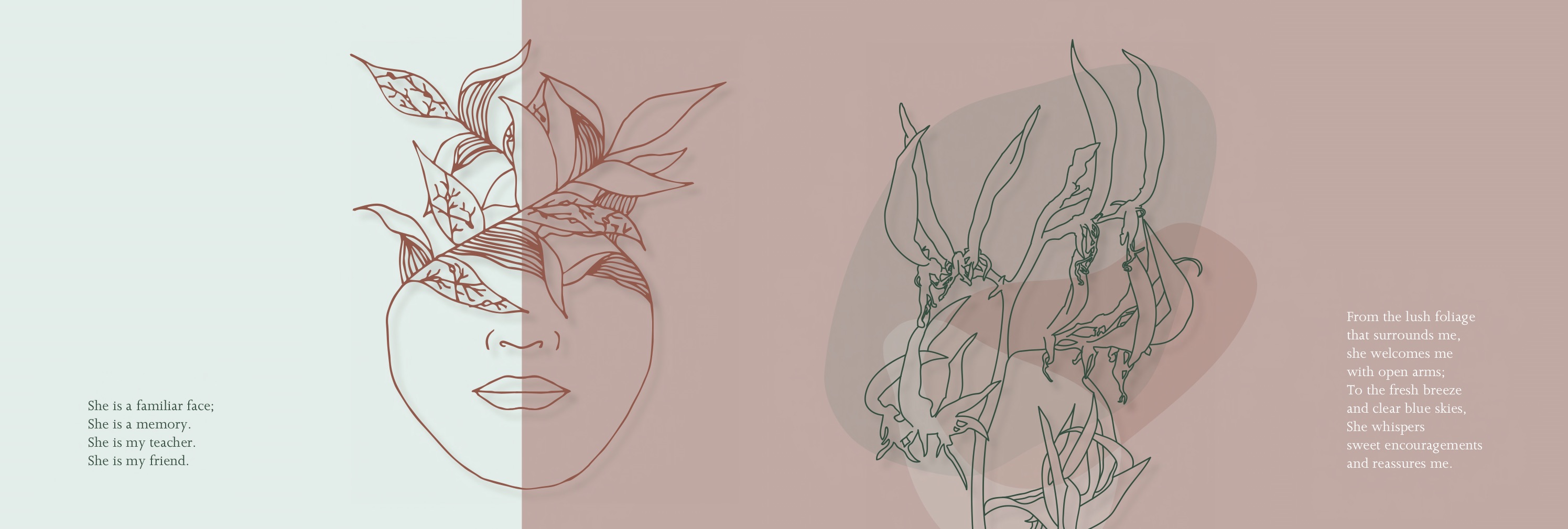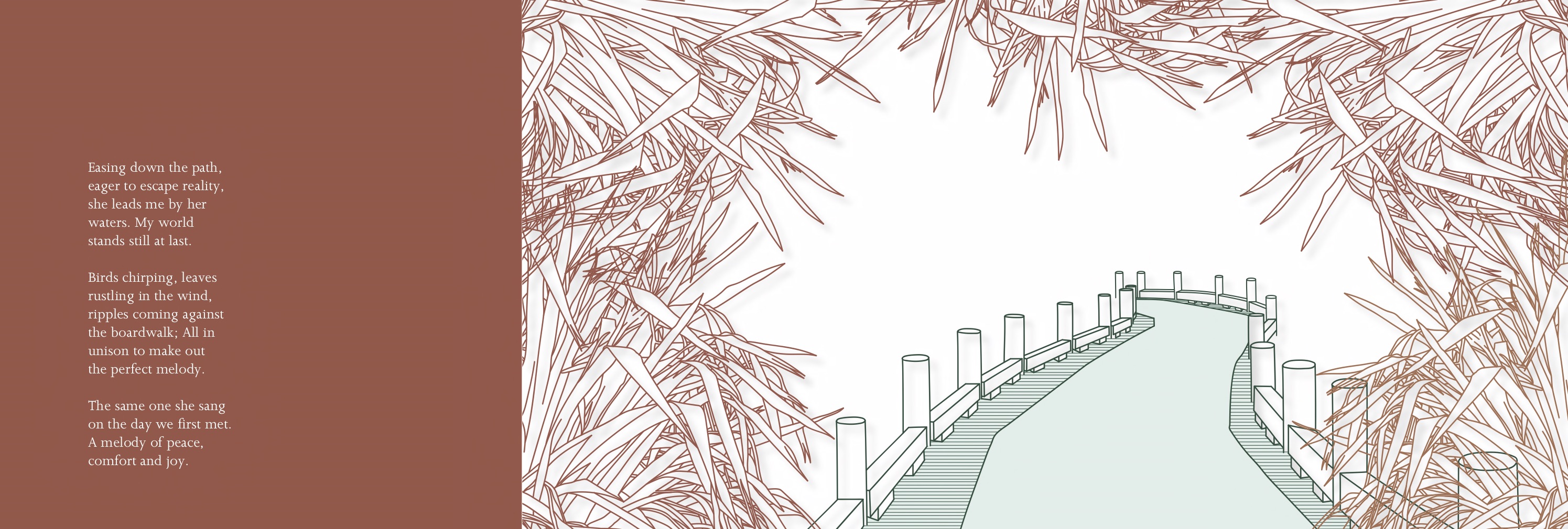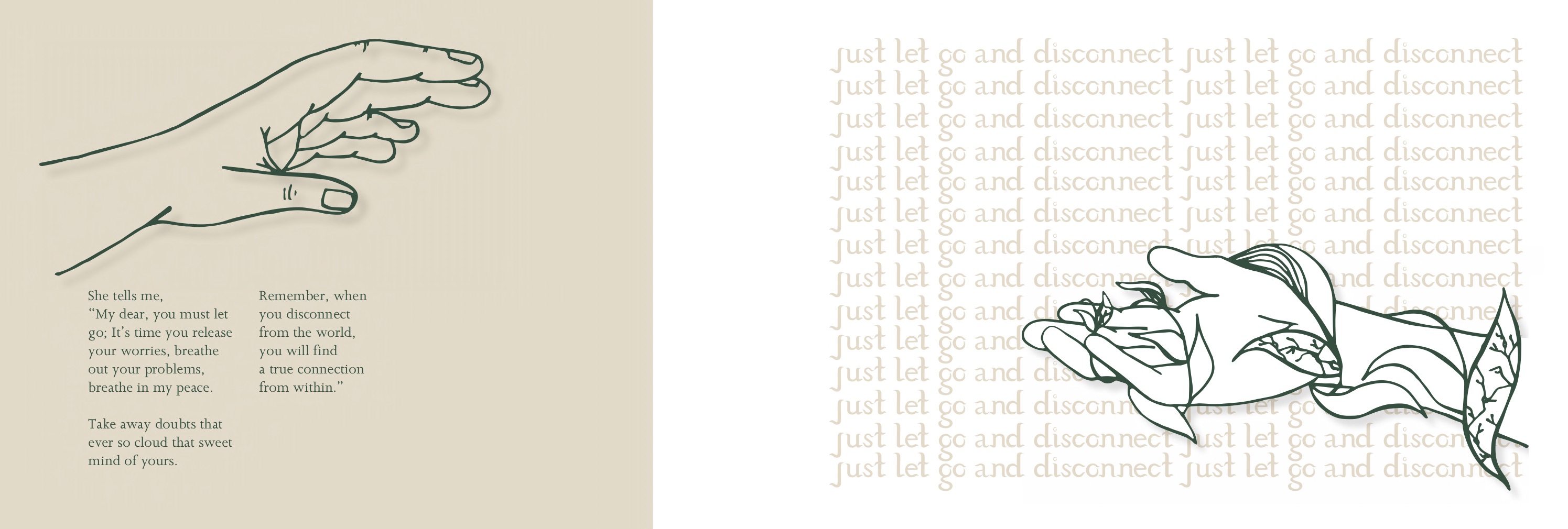 Lastly, for the publication, seeing as my project/ publication was poetry based, I really wanted to send a message to the people who see this, act as a reminder for people to take time off for themselves. To find comfort and reduce stress whether it be through nature/ natural environment.